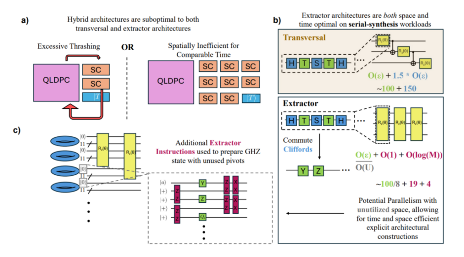 中性原子の設計図は、原子アレイプラットフォームに固有の「測定ボトルネック」に焦点を当てています。このプラットフォームでは、測定時間がゲート操作よりも大幅に遅くなります。これを軽減するために、研究者たちは、QLDPCモジュール内の未使用スペースを利用して非クリフォードゲートの注入を並列化する、テレポートベースのスキームを導入しました。このアプローチは、物理量子ビットのフットプリントを増やさずに、シリアルな「エクストラクター」アーキテクチャと比較してシミュレーションで3倍の高速化を達成しました。このチームは、約15時間でハミルトニアンダイナミクスシミュレーションを実行できる11,495個の原子を使用する構成を特定しました。